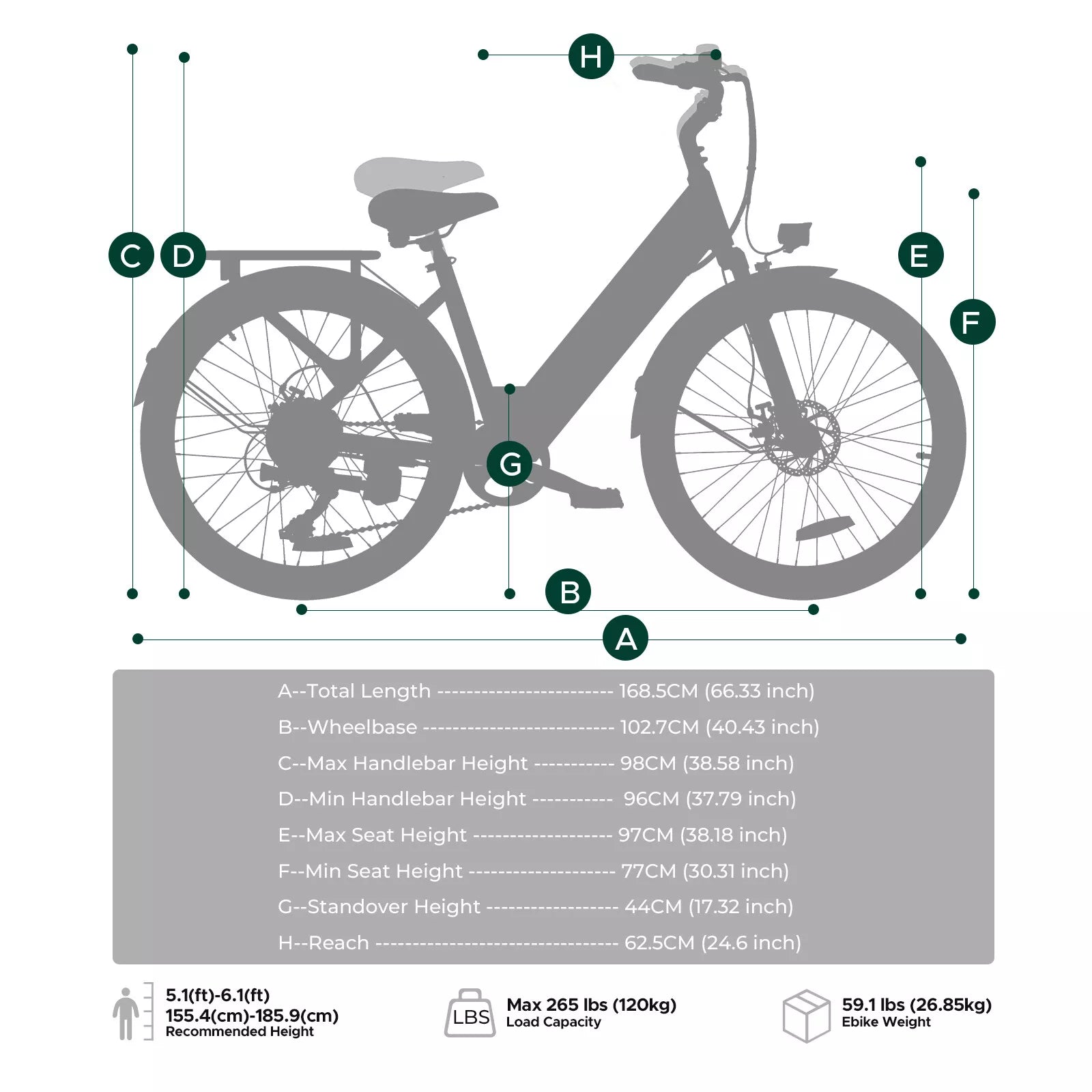 Dank des robusten, aber leichten Rahmens aus Kohlenstoffstahl trägt das Fahrrad bis zu 120 kg und ist ideal für Fahrer*innen zwischen 155–185 cm. 85 % vormontiert geliefert – Sie brauchen nur noch wenige Handgriffe, um loszufahren!